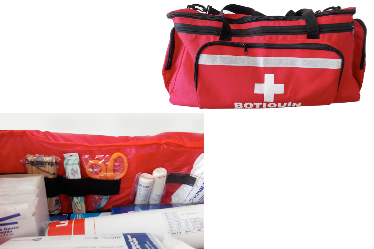 Botiquines fijos, tipo morral, tipo canguro, de rescatista